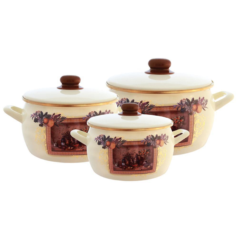 Набор Metrot "Картина. Эксклюзив" состоит из трех кастрюль с крышками, изготовленных из высококачественной стали с эмалированным покрытием. Эмалевое покрытие, являясь стекольной массой, не вызывает аллергии и надежно защищает пищу от контакта с металлом.