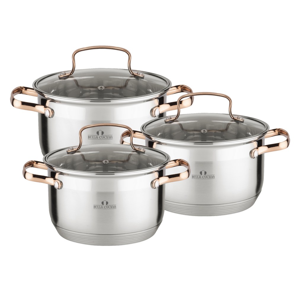 Кастрюля с крышкой 16х10,5 см, 2,1 л, 18х11,5 см, 3,0 л , 20х12,5см, 3,9 л.