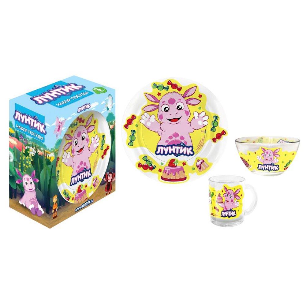 Набор детской посуды серии "Лунтик" порадует любого малыша.