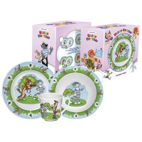 Набор детской посуды "Простоквашино" порадует любого маленького поклонника старых советских мультфильмов.