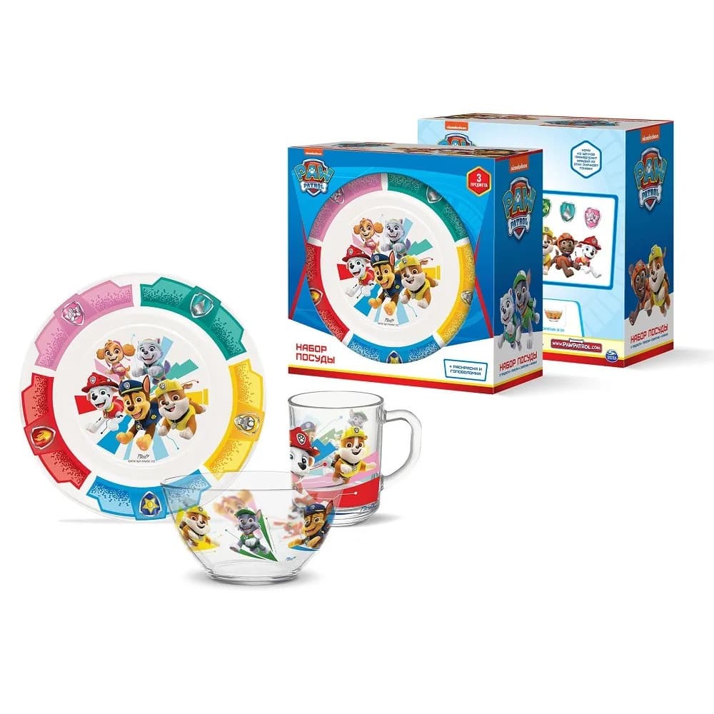 Набор детской посуды "Щенячий патруль" декорирован двойной деколью: это значит, что рисунок на внутренней стороне посуды выглядит не менее ярким, чем на внешней.
