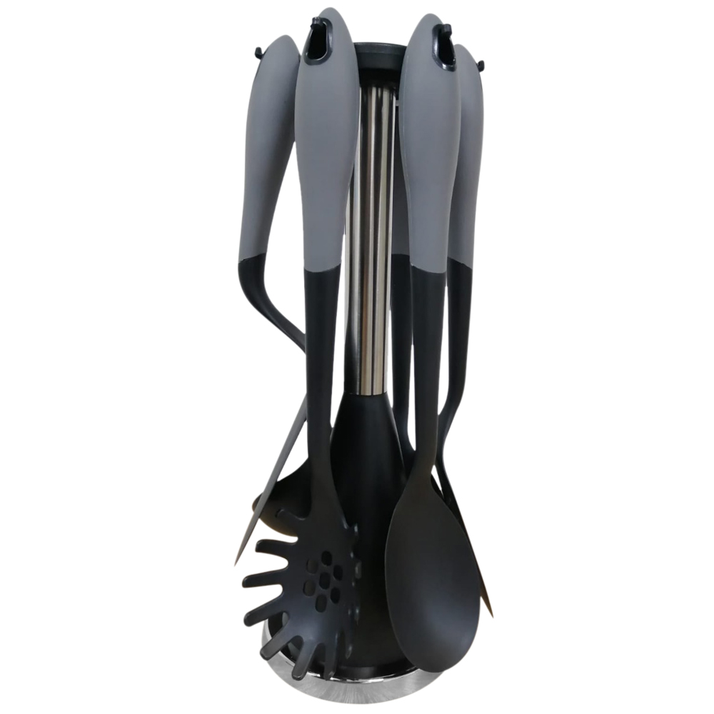 Кулинария это настоящее искусство, а повар почти что художник! И если в Вашем арсенале есть кухонные принадлежности, то Вы точно можете считать себя им!Набор нейлоновых кухонных принадлежностей с ручкой из нержавеющей стали Kamille 5229 (7 предметов)Материал ручки: нейлон с мягкой TPR накладкой.Материал рабочей части: нейлон.Материал подставки: пластик, нержавеющая сталь.В набор входит:лопатка 32х5 см,ложка для пасты 30х6,5 см,ложка поварская 32х7 см,лопатка с отверстиями 32х9 см,шумовка 32х7 см,половник 29,5х9 см,поставка 36,5х13 смОсобенности:стильный современный дизайнподходит для всех типов покрытийвсе принадлежности удобные и практичные в использованииручки оснащены петлями для подвешиванияможно мыть в посудомоечной машине.