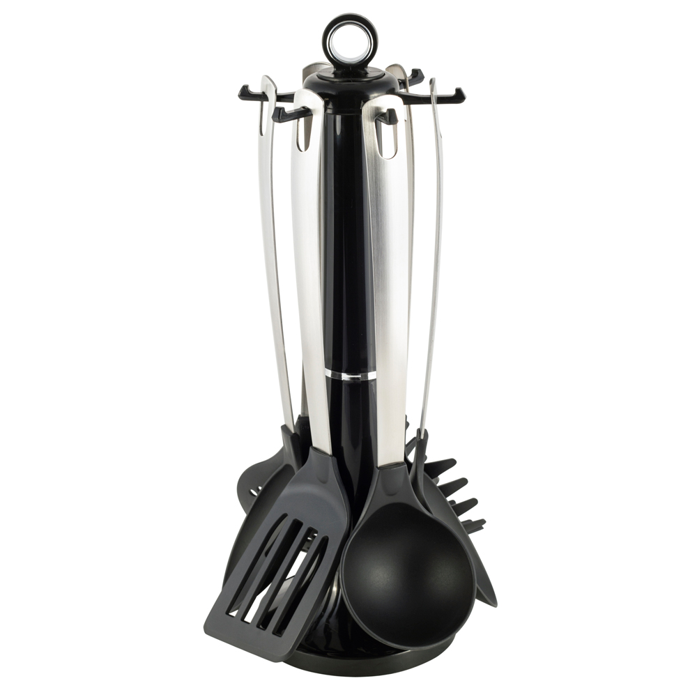Набор кухонных принадлежностей из 7-ми предметов на крутящейся подставке.