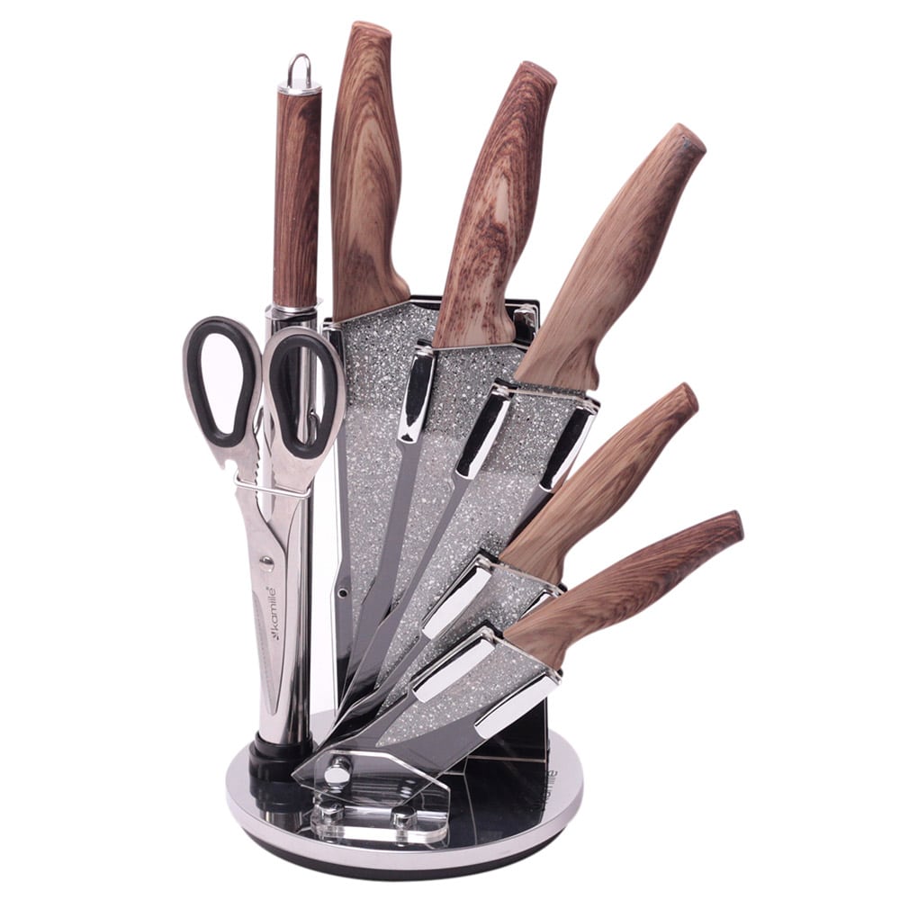 Количество предметов в наборе: 8 (5 ножей + ножницы + точилка + подставка)