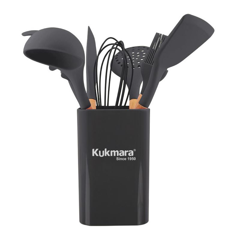 Кухонные принадлежности изготовлены из высококачественных материалов: силикона и натурального дерева, что делает их безопасными для здоровья и практичными для использования. Силикон выдерживает температуру до 230 градусов, не впитывает запахи. Отлично подойдет для посуды с антипригарным покрытием, не оставляет царапины на поверхности. Рукоятка предметов выполнена из натурального дерева, на которую нанесен логотип «KUKMARA». Имеет отверстие для тех, кто предпочитает размещать приборы в подвешенном состоянии.