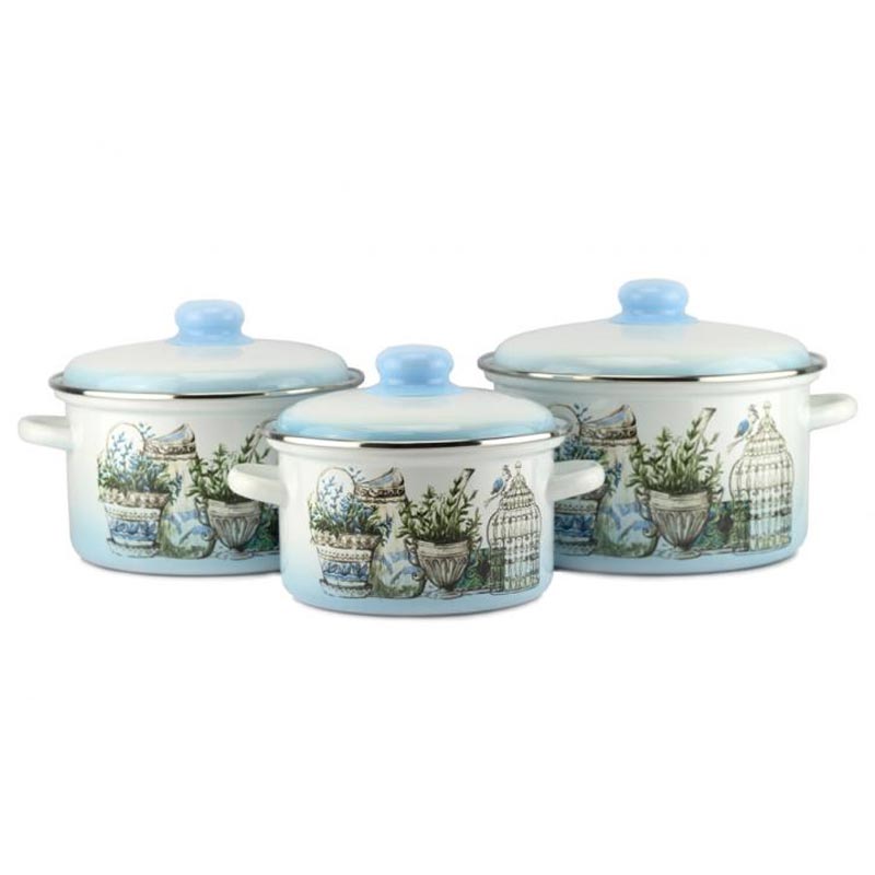 Набор универсальных эмалированных кастрюль "Прованс" (2 л, 3 л, 4 л) цилиндрической формы.