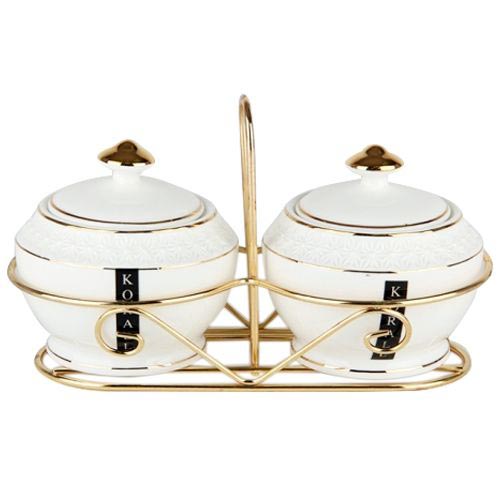 Оригинальный набор сахарниц "Снежная королева" изготовлен из керамики повышенной прочности и белизны на металлической подставке.