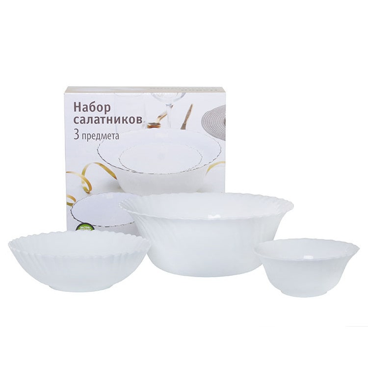 Салатники Blanche изготовлены из опалового стекла. Опаловое стекло - это другое название стеклокерамики. Посуда из стеклокерамики одна из самых прочных и безопасных.