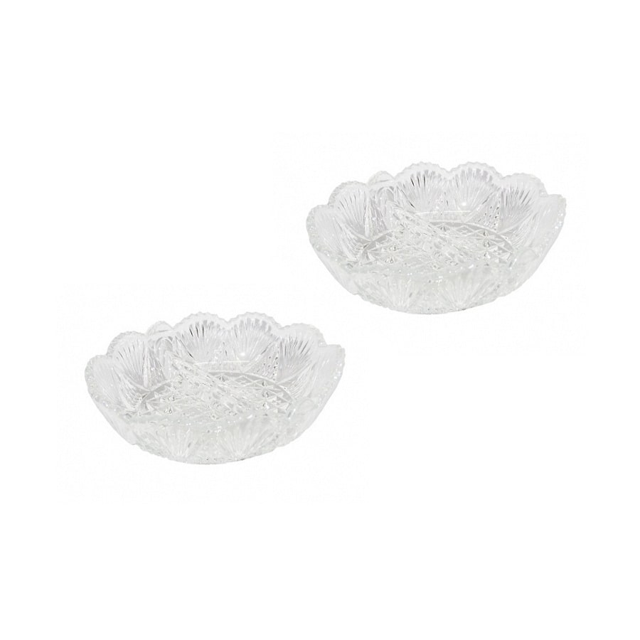 Набор из 2-х салатников, размером 135x105 мм, каждый салатник разделен на две части, выполнен из качественного прочного узорного стекла.