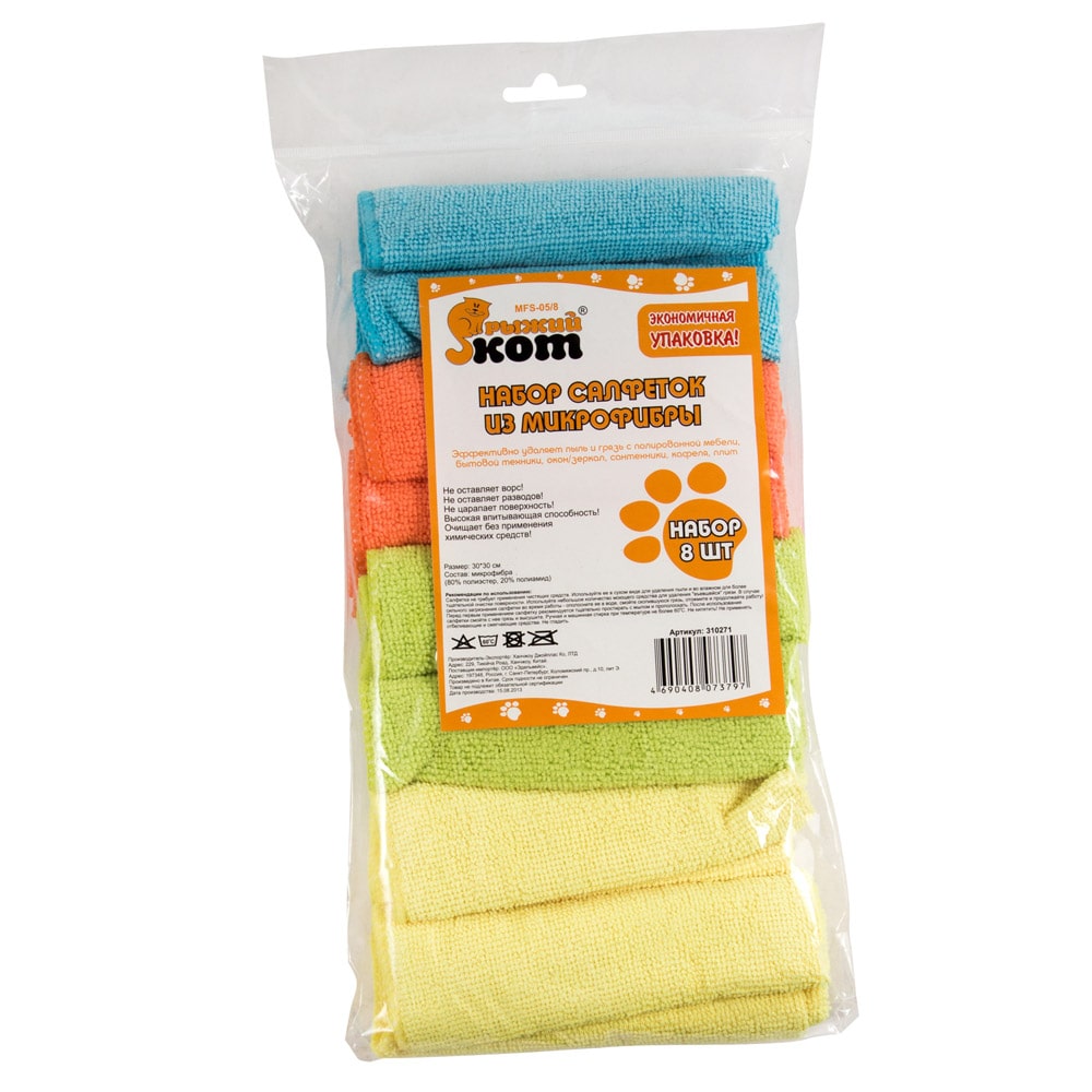 Набор салфеток из микрофибры Рыжий кот. Состав: 80% полиэстер, 20% полиамид.