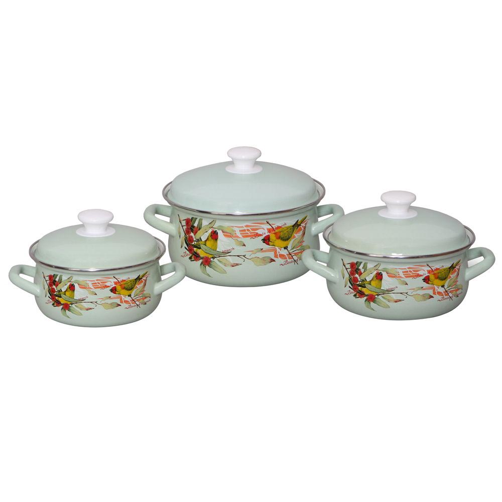 Для производства посуды используются экологически чистые цветные эмали, обеспечивающие высокую коррозийную стойкость.