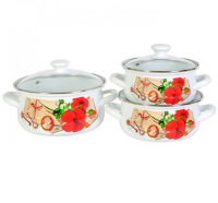 Набор кастрюль "Винтаж" Экстра сферической формы выполнены из стали и имеет высококачественное эмалевое покрытие. Все изделия в наборе оформлены оригинальным рисунком. В комплекте с кастрюлями есть стеклянные крышки с ручками из термостойкого пластика. Кастрюли могут быть использованы на всех типах кухонных плит: электрических, газовых, керамических и индукционных. Подходит для мытья в посудомоечных машинах.