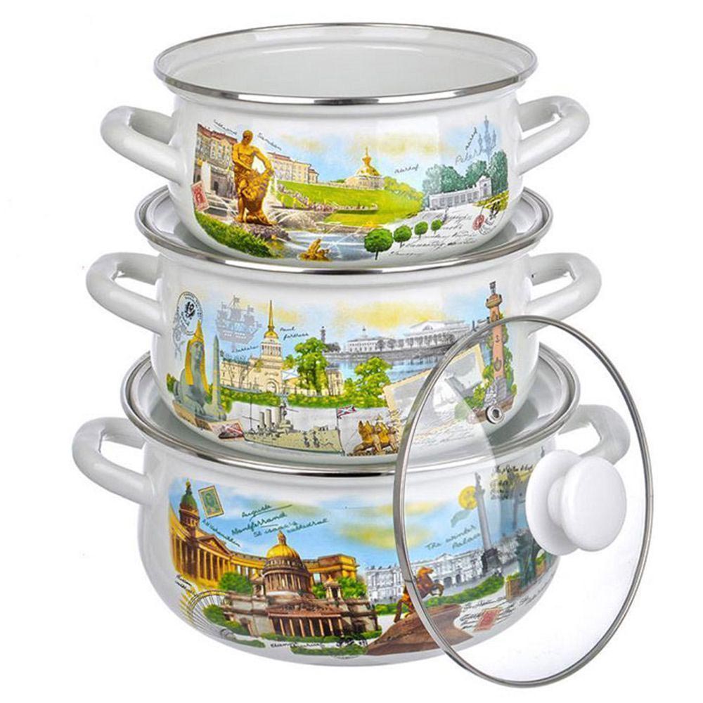 Набор "Белые ночи-1" - 3 сферические эмалированные кастрюли