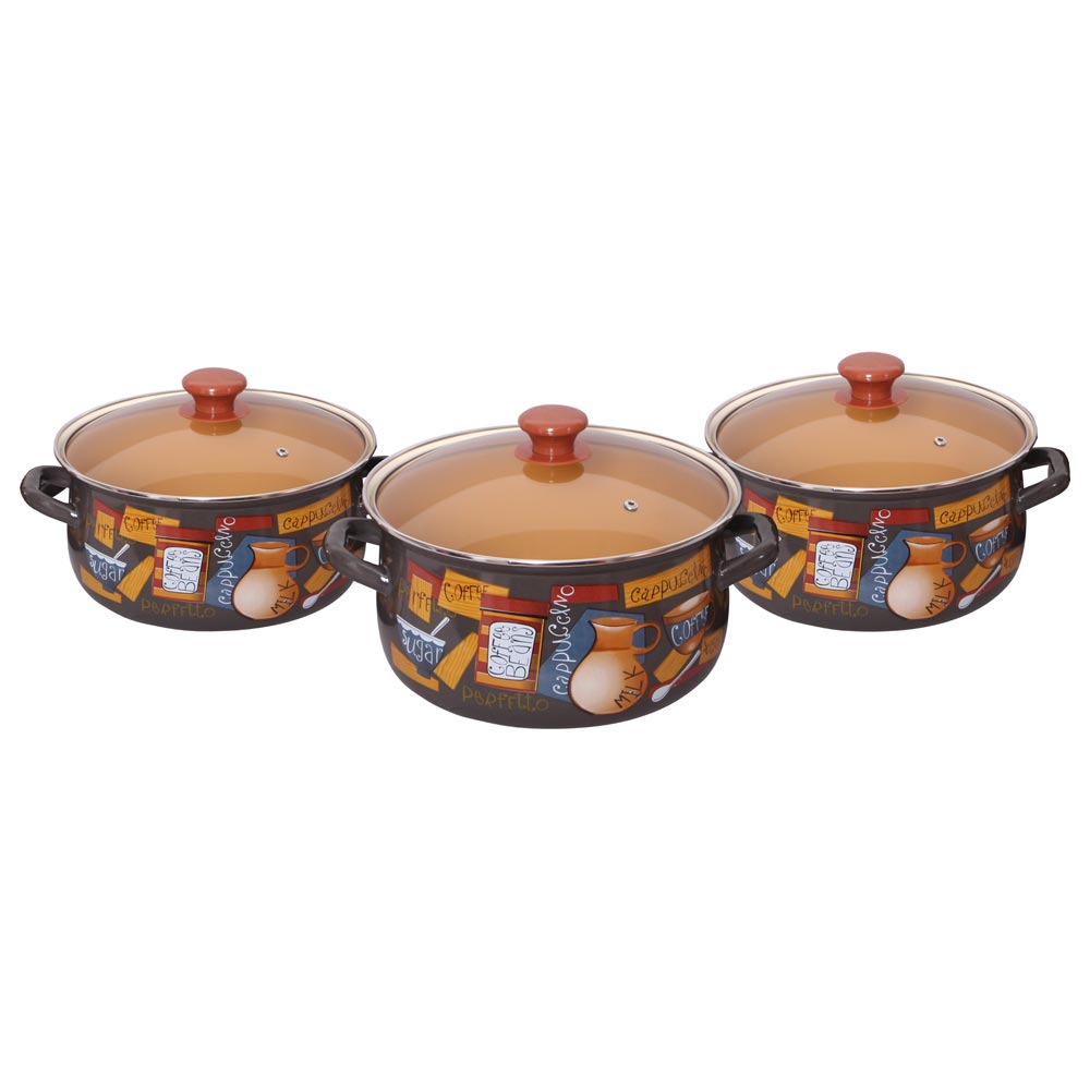 Набор эмалированных кастрюль "Капучино"Экстра" сферической формы включает: