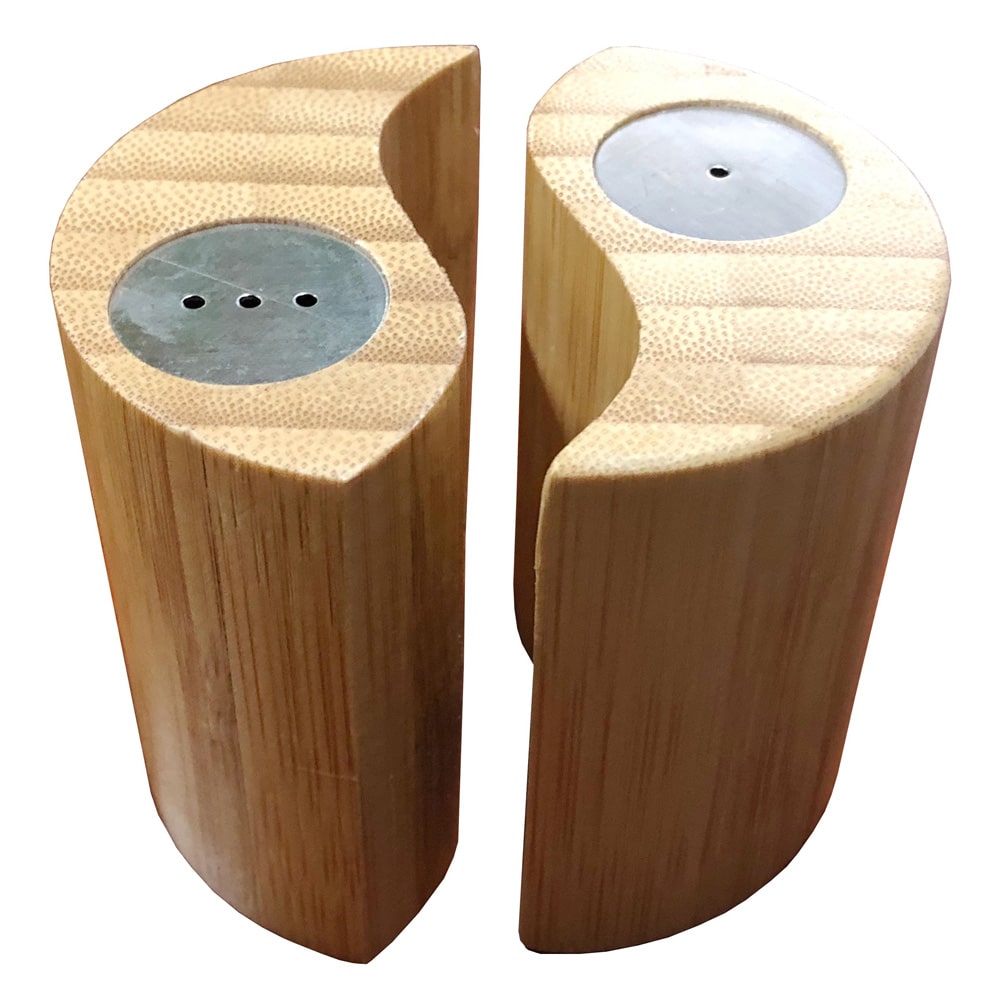 Набор солонка + перечница выполнен из высококачественной древесина бамбука. Набор состоит из двух емкостей, создающих вместе общую форму инь и ян – это интересное дизайнерское решение.