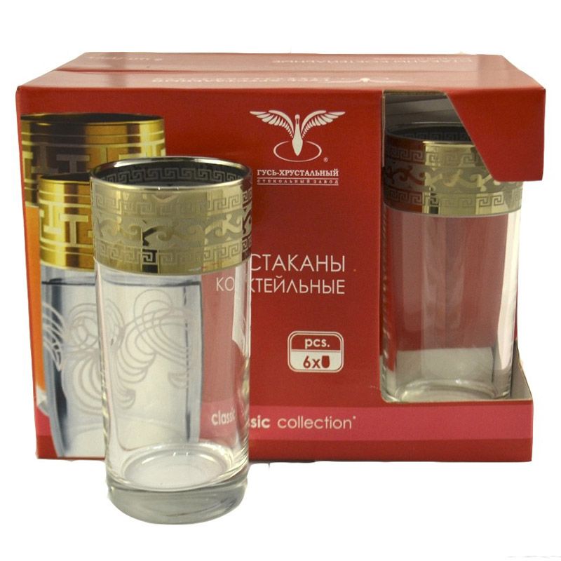 Набор Гусь-Хрустальный "Русский узор" состоит из 6 стаканов, изготовленных из высококачественного натрий-кальций-силикатного стекла.
