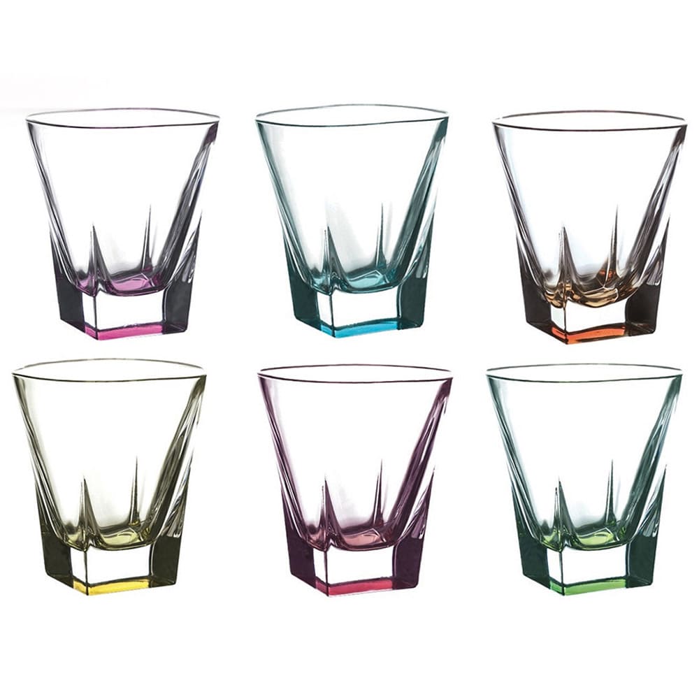 Набор бокалов для виски с цветным дном от бренда RCR дополнит сервировку любого праздниного стола.