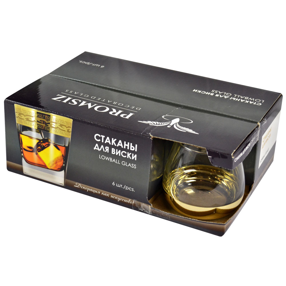 Набор стаканов для виски выполнены из прозрачного натрий-кальций силикатного стекла, по наружной стороне декорирован глянцевыми препаратами по металл. Состоит из шести бокалов. Изделия прекрасно подойдут для подачи виски, сока, воды.