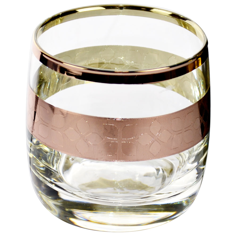 Набор стаканов для виски из бесцветного натрий-кальций силикатного стекла, декорированный по наружной поверхности металлами, глянцевыми препаратами и узором "Шарм".