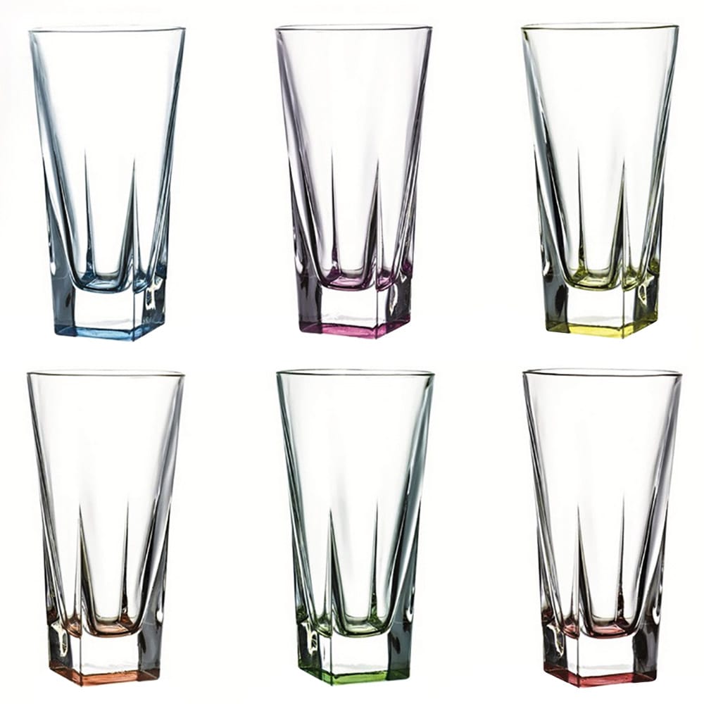 Высокое и прозрачное донышко стакана квадратной формы напоминает кубик льда, добавленный в мохито… Или в виноградный сок, или в лимонад – в зависимости от цветовой гаммы каждого изделия. Это и вызывает желание утолить жажду – красиво и с удовольствием. А по-другому и не получится, если на вашем столе посуда из хрустального стекла итальянского производства RCR Fusion.