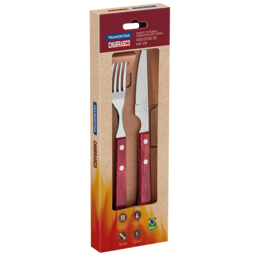 Набор столовых приборов для стейка "Churrasco" от бразильского бренда Tramontina. Рассчитан на 1 персону (вилка + нож для стейка).