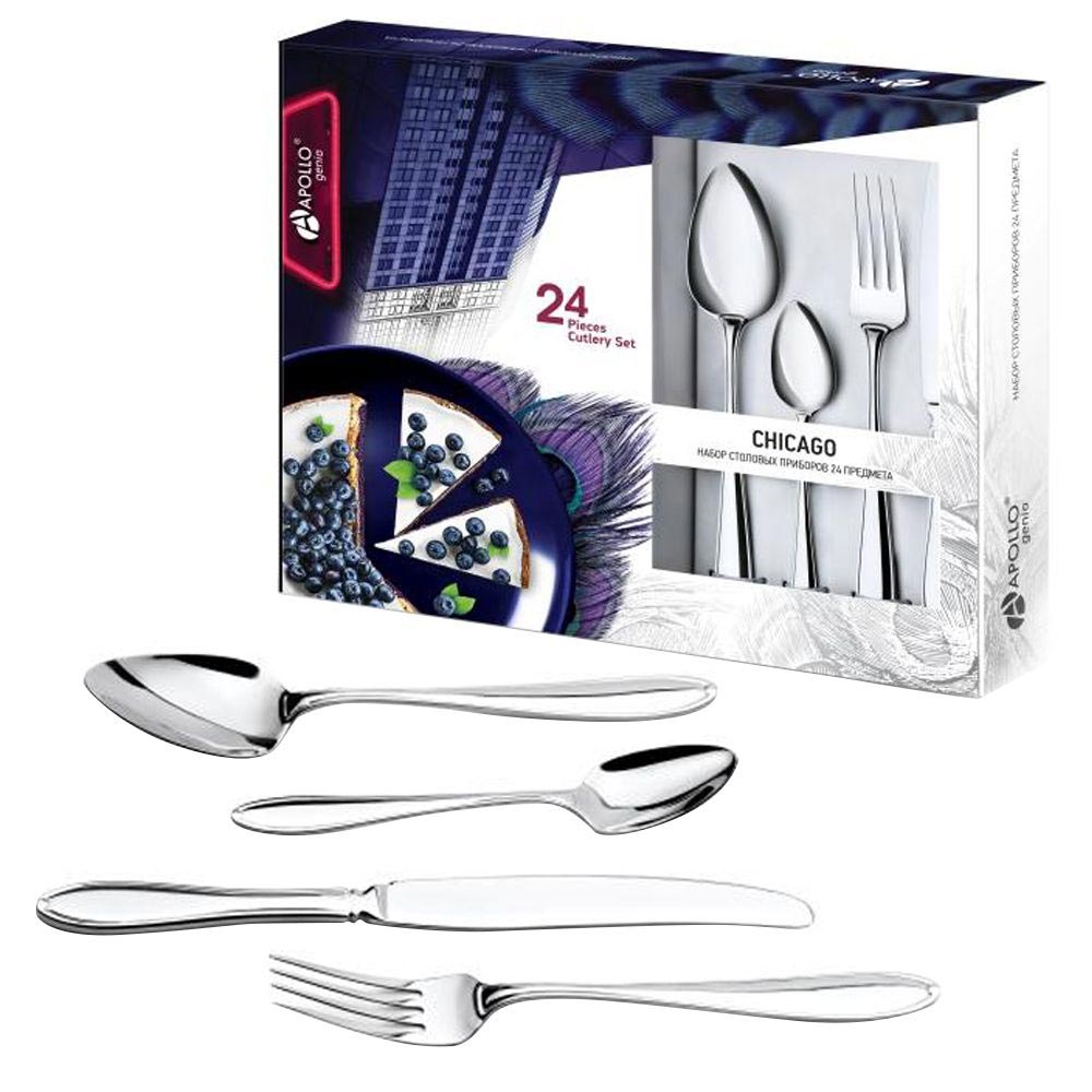 Оригинальный набор столовых приборов, состоящий из стандартного состава 24 предметов, включает в себя