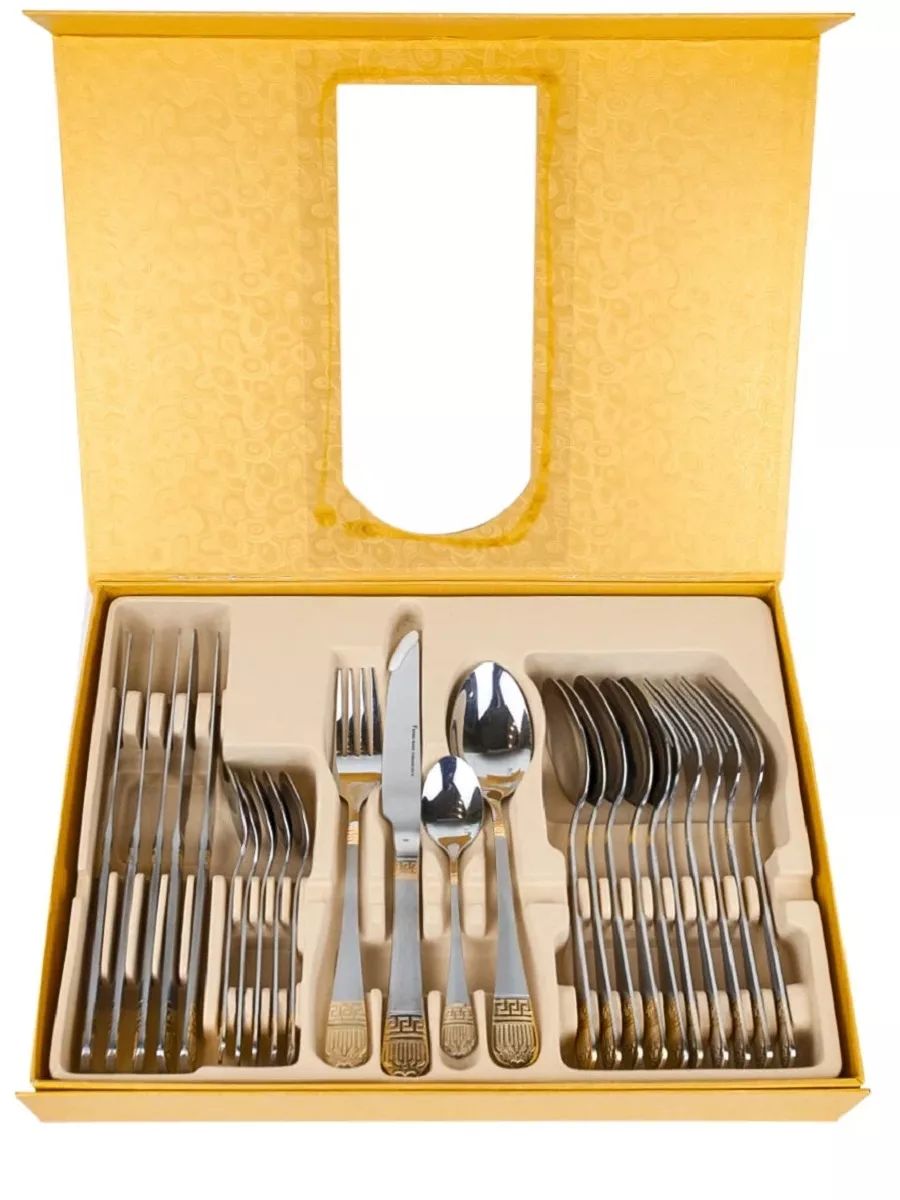 Представляем вашему вниманию столовый набор из 24 предметов, который станет идеальным дополнением для вашего дома. Изготовленный из нержавеющей стали 18/10, этот набор сочетает в себе профессионализм и элегантность, обеспечивая долговечность и надежность на долгие годы.