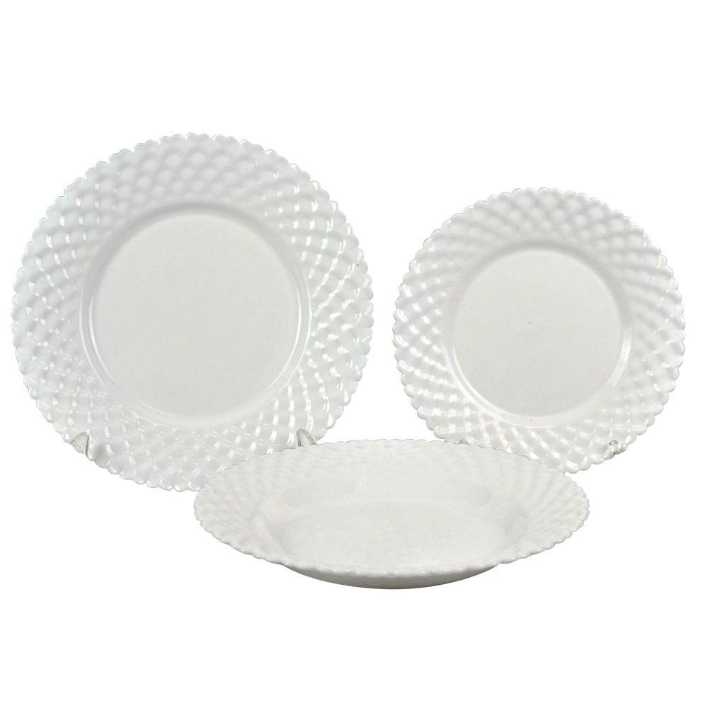 Практичный и удобный в обращении набор посуды Royal Garden рассчитан на 6 человек. Изделие выполнено из опалового стекла. Гигиеничный не пористый материал препятствует скоплению остатков пищи и развитию бактерий. Подходит для использования в посудомоечной машине и СВЧ.