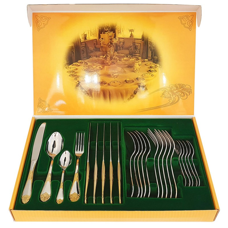 Состав набора: вилка столовая 6 шт., ложка столовая 6 шт., ложка чайная 6 шт., нож столовый 6 шт.
