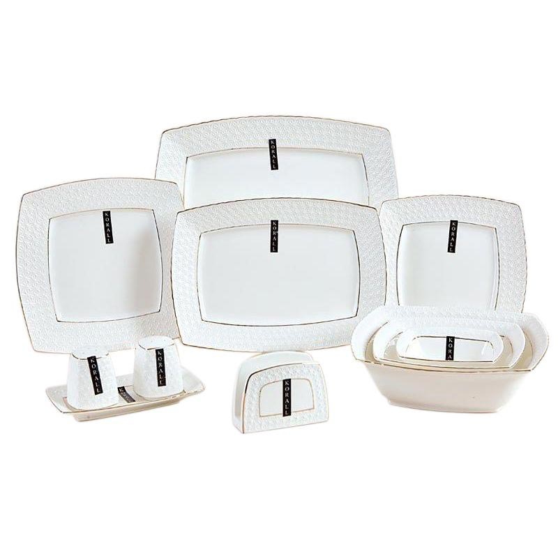 Выполненный в современном стиле набор коллекции "Снежная Королева" с классической расцветкой белого с золотом прекрасно будет смотреться на праздничном столе.