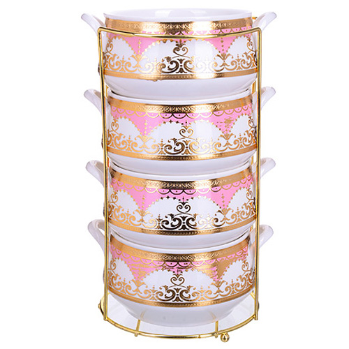 Набор из 4-х супниц LORAINE выполнен из высококачественного фарфора и украшен декоративным рисунком. Супницы компактно располагаются на оригинальной подставке из нержавеющей стали и не занимают много места при хранении.