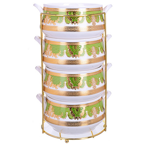 Набор из 4-х супниц LORAINE выполнен из высококачественного фарфора и украшен декоративным рисунком. Супницы компактно располагаются на оригинальной подставке из нержавеющей стали и не занимают много места при хранении.