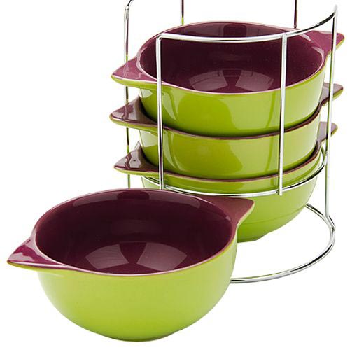 Набор из 4-х супниц зелено-фиолетового цвета выполнен из биокерамики.