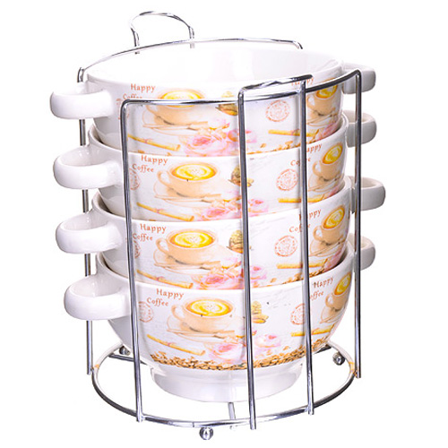 Набор из 4-х супниц LORAINE выполнен из высококачественного фарфора и украшен декоративным рисунком. Супницы компактно располагаются на оригинальной подставке из нержавеющей стали и не занимают много места при хранении.