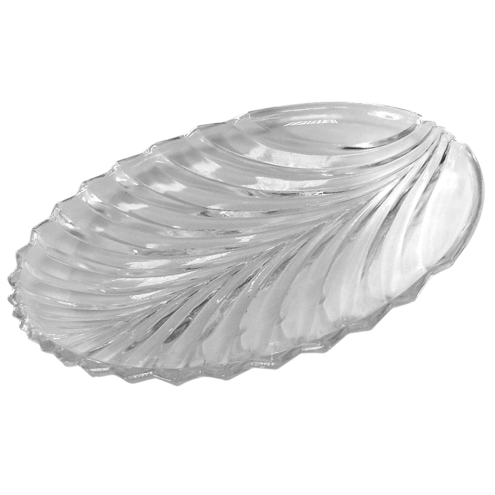 Набор стеклянных тарелок из 6 штук, овальной форты, прозрачные с рельефным узором.