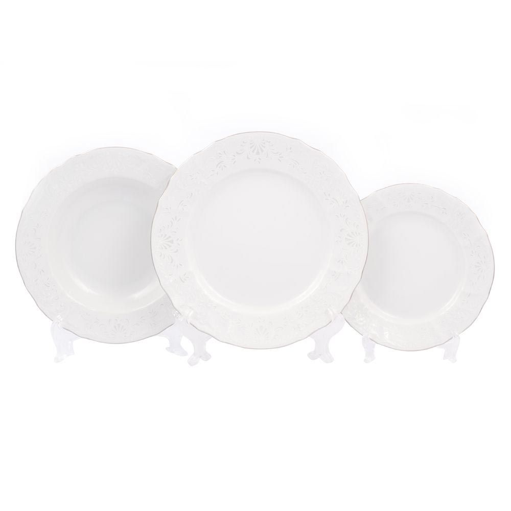 Набор фарфоровых тарелок "Бернадотте Платиновый Узор 2021" (18 предметов) на 6 персон: