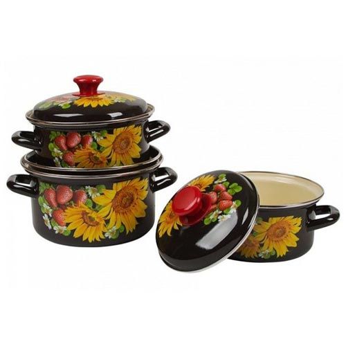 - эмалевая поверхность каждой посуды набора препятствует размножению бактерий, и безупречна в вопросах гигиены и прост