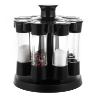 Набор емкостей для специй на круглой подставке Kamille KM-7051идеально подойдет для хранения различных приправ и специй. Благодаря прозрачным стенкам баночек, можно видеть их содержимое. Такой набор не только стильно дополнит интерьер кухни, но и станет незаменимым помощником в приготовлении ваших любимых блюд С помощью функционального набора для специй вы сможете с легкостью завершить Ваше блюдо, добавив к нему свой темперамент и характер. Все 8 баночек сделаны из акрила, они оснащены герметично закрывающимися крышками, поэтому исключительный аромат каждой приправы не испарится со временем. Такой набор станет идеальным дополнением при приготовлении любого блюда, а благодаря удобной круглой подставке спецовники всегда будут под рукой, и их стильный дизайн подойдет к интерьеру любой кухни. Также такой набор станет отличным подарком.