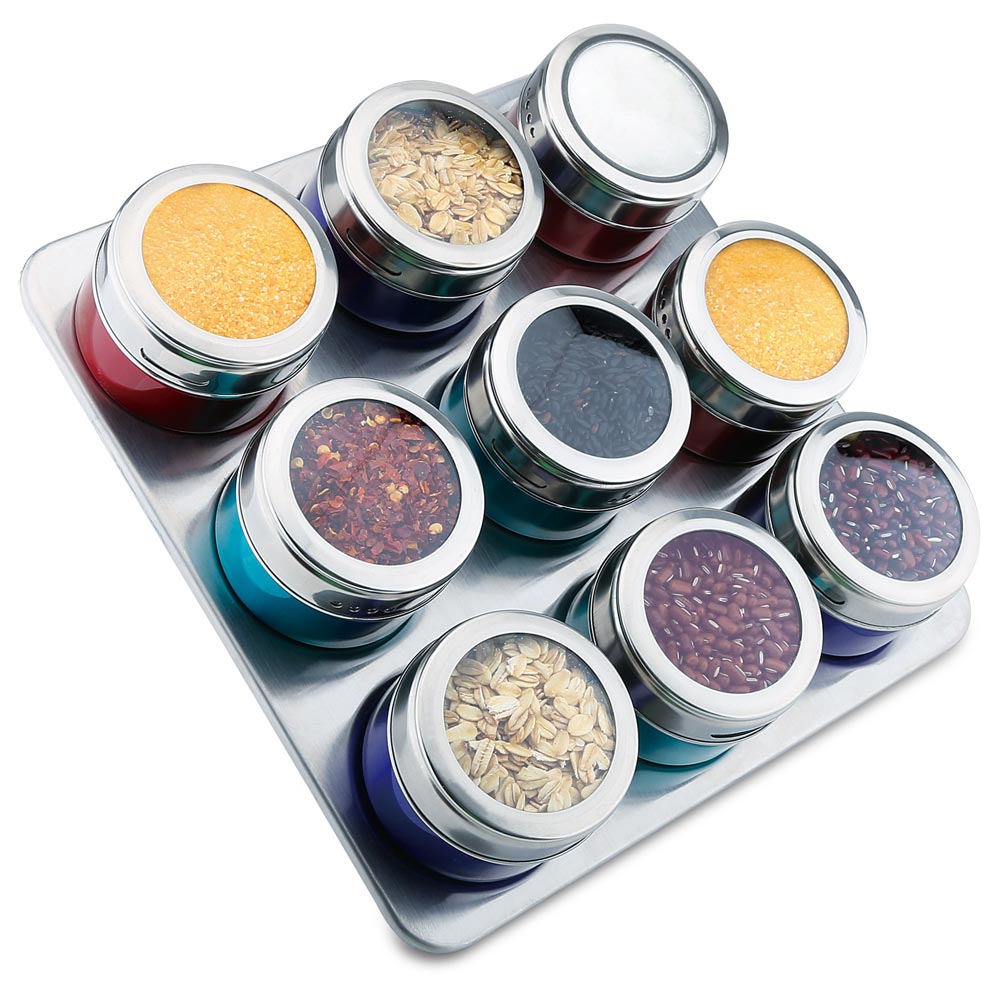 9 цветных банок с магнитом.