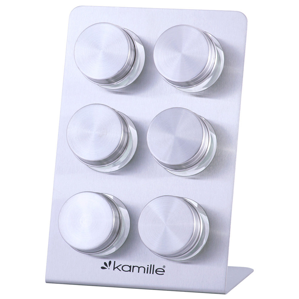 Набор емкостей для специй на прямоугольной подставке Kamille KM 7036 идеально подойдет для хранения различных приправ и специй. Благодаря прозрачным стенкам баночек, можно видеть их содержимое. Такой набор не только стильно дополнит интерьер кухни, но и станет незаменимым помощником в приготовлении ваших любимых блюд С помощью функционального набора для специй вы сможете с легкостью завершить Ваше блюдо, добавив к нему свой темперамент и характер. Все 6 баночек сделаны из стекла, они оснащены герметично закрывающимися крышками из нержавеющей стали, поэтому исключительный аромат каждой приправы не испарится со временем. Такой набор станет идеальным дополнением при приготовлении любого блюда, а благодаря удобной подставке спецовники всегда будут под рукой, и их стильный дизайн подойдет к интерьеру любой кухни. Также такой набор станет отличным подарком.