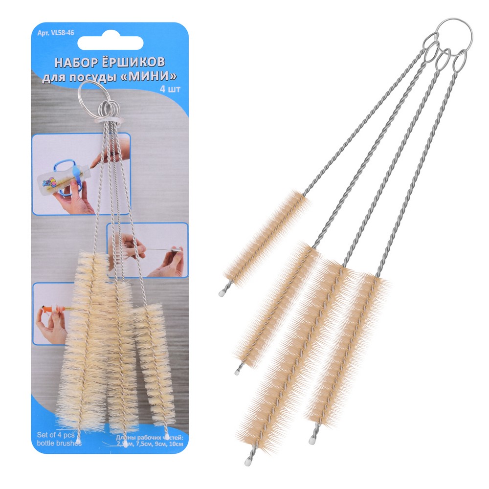 Набор ёршиков для посуды МУЛЬТИДОМ Мини для мытья посуды с узким горлышком, прочистки отверстий.