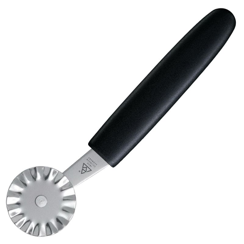 Фигурный роликовый нож для теста, выполнен из нержавеющей стали и пластика, D=55, H=55мм, черный.
