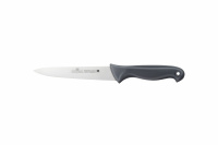 Цельное кованое лезвие ножей изготовлено из кованой стали 3Cr13 твердостью 53-55 HRC, которая отлично точится и долго сохраняет остроту.  Имеется клипса для цветного кодирования (определенному цвету соответствует продукт, для которого предназначен нож). Это наиболее профилактическая мера, препятствующая переносу бактерий от одного вида продукта к другому.
