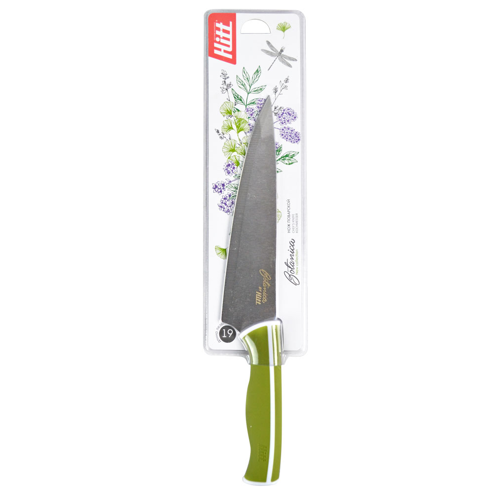 Нож поварской Hitt Botanica идеально подходит для нарезки крупных кусков мяса, птицы, рыбы. Нож отлично сбалансирован и удобно ложится в руку. Ручка изготовлена из полипропилена, покрыта термопластичной резиной, благодаря этому покрытию нож удобно держать в руке. Нож имеет двустороннюю заточку, что гарантирует ему безупречную длительную службу на вашей кухне.