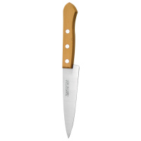 Кухонный нож Tramontina Carbon изготовлен из углеродистой стали SAE 1070. Благодаря уникальному методу закалки в несколько этапов (термическая закалка, охлаждение, промораживание, нагревание газом) сталь SAE 1070 приобретает особую гибкость и твердость, позволяющую сохранять остроту лезвия в течение продолжительного времени при высоких интенсивных нагрузках. Рукоятки серия Carbon выполнены из натурального дерева. Поварской нож универсален и может быть использован для любых продуктов