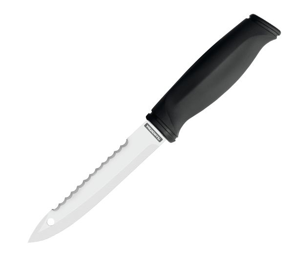 Лезвие из качественной нержавеющей стали, слегка эластичное, но не гибкое. Удобная полипропиленовая рукоять.