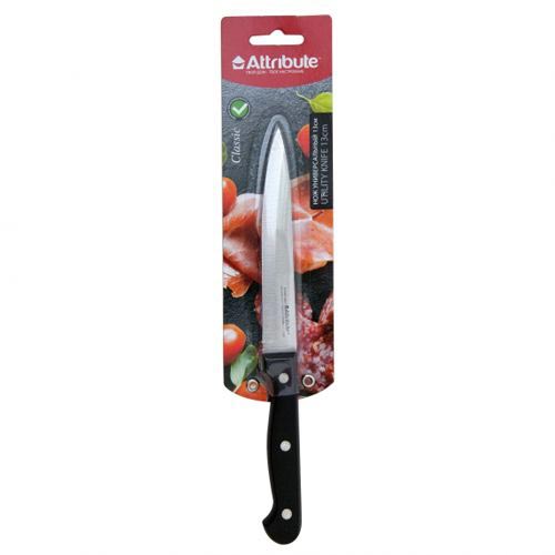 Нож универсальный Attribute "Classic" прекрасно справится с нарезкой любых продуктов, а также чисткой овощей и фруктов. Лезвие ножа выполнено из нержавеющей стали, а ручка - из пластика.