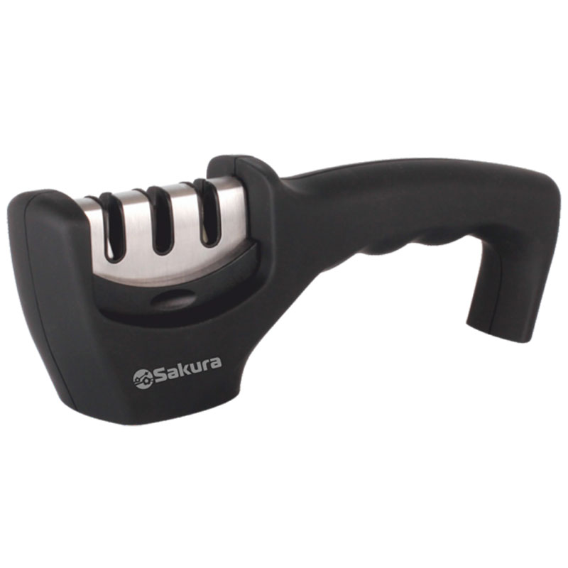 Универсальная ножеточка, 3 слота для заточки: с алмазным покрытием (подготовка, правка), с карбидным покрытием (заточка), с керамическим покрытием (полировка, шлифовка).