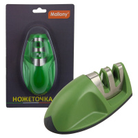 Настольная точилка для ножей с двумя рабочими зонами применяется для всех видов металлических ножей - от кухонных до туристических. Одна зона: металлические стержни (для первичной заточки), вторая зона: керамические стержни (для доводки лезвия ножа).