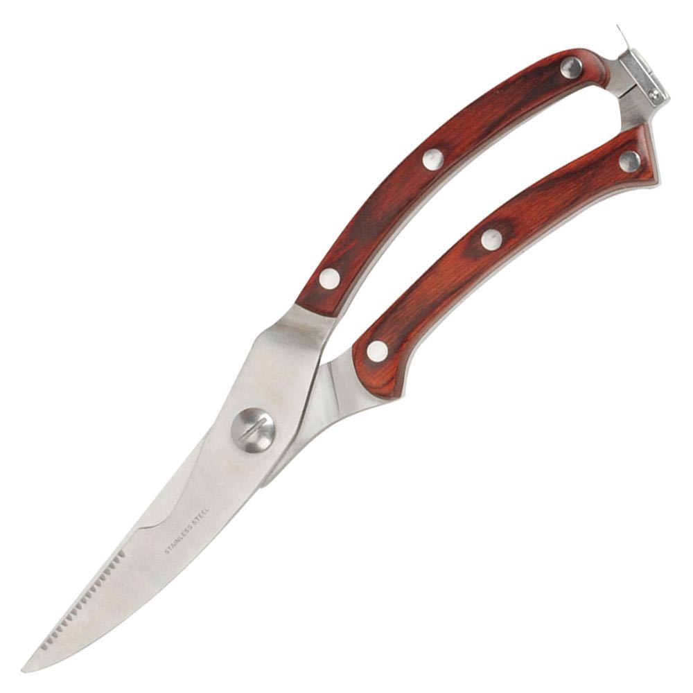 Кухонные ножницы "Linea Nippon" имеют лезвия, произведенные из нержавеющей стали и сильные утолщенные ручки из дерева пакка.